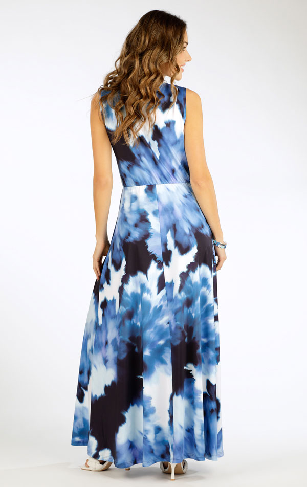 Dlouhé dámské šaty bez rukávu v minimalistickém a nadčasovém střihu s hlubokým
