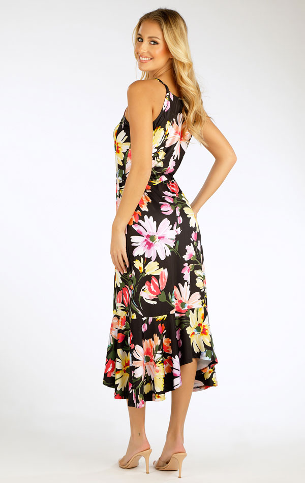 Šaty dámské dlouhé na ramínka mají působivý a pohodlný střih s odhalenými rameny
