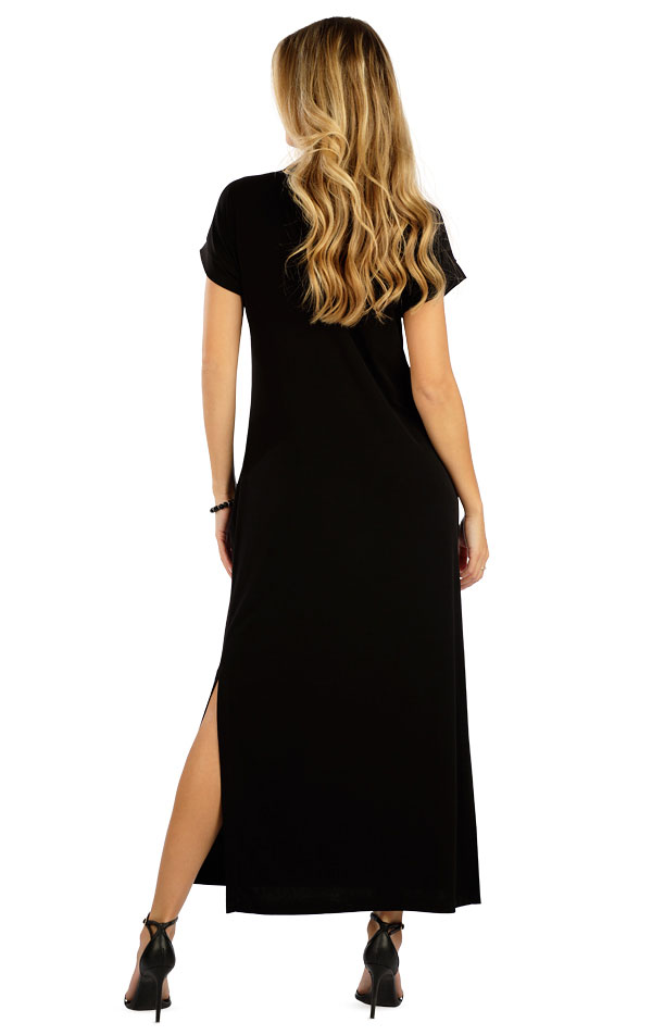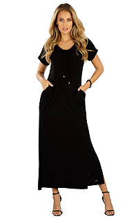 Dlouhé dámské šaty s krátkým rukávem v moderním střihu s praktickými kapsami a