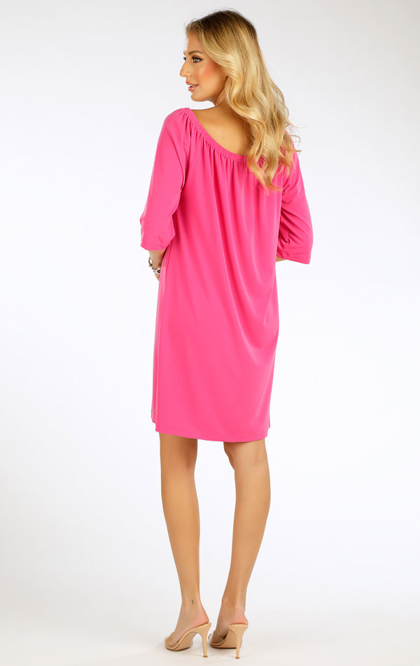 Lehké dámské šaty v trendy volném střihu s odhalenými rameny a krátkým