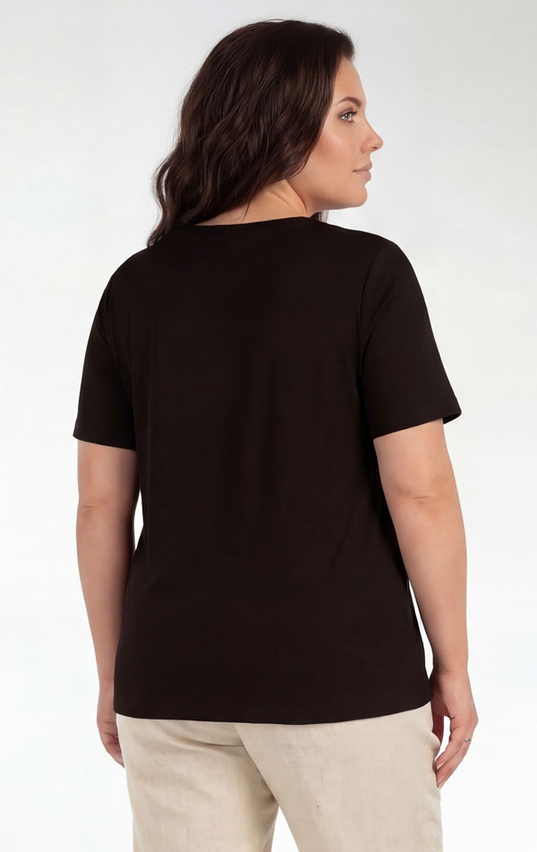 Dámské triko pro plnoštíhlé PLUS SIZE s volnějším střihem a výstřihem do V