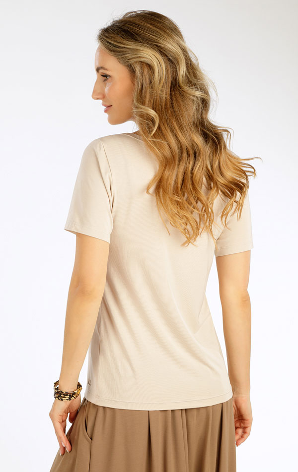 linii krku a působí elegantně a žensky. Tričko s krátkým rukávem je klíčovým